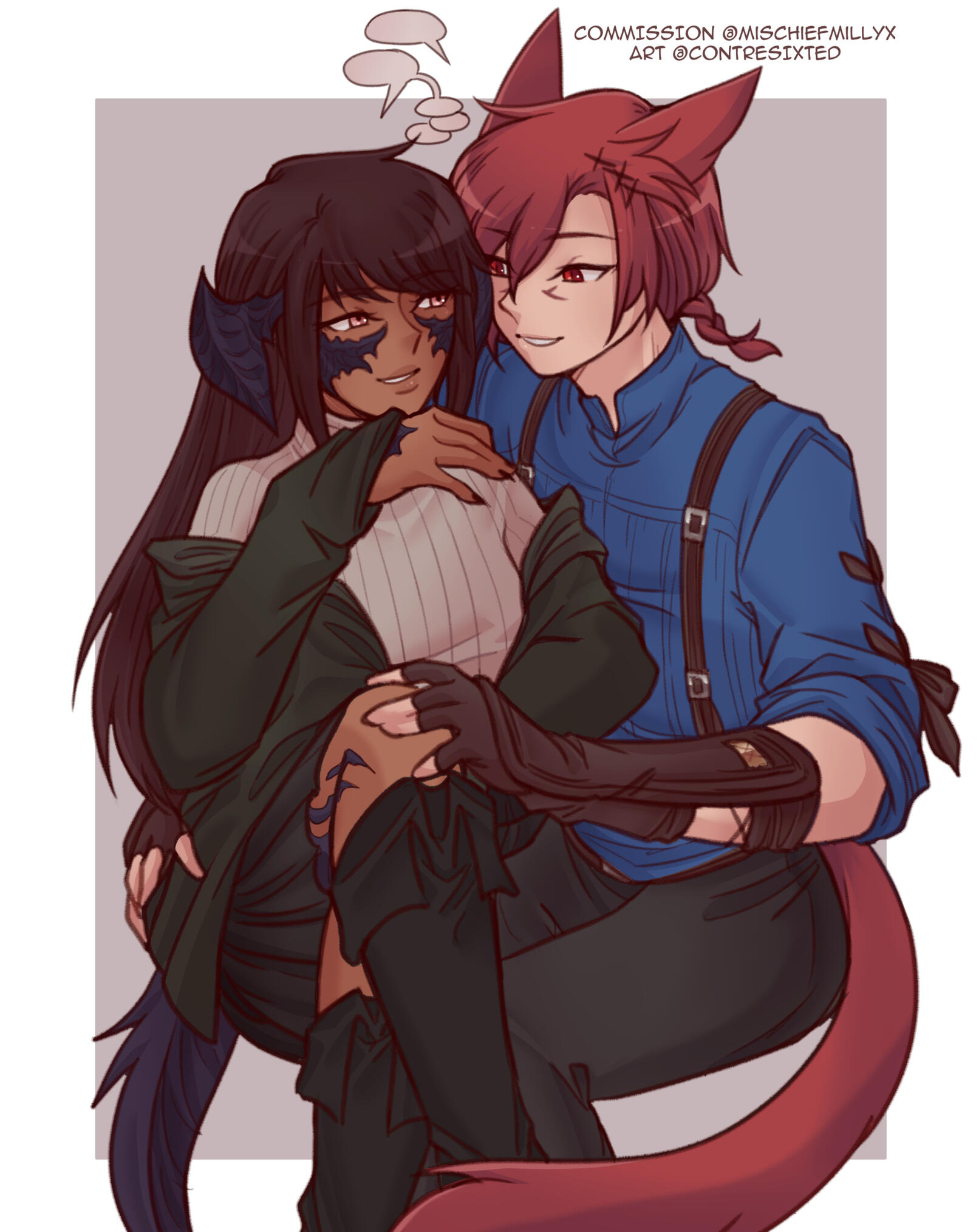 What do you do when the person you love and trust most is also someone who terrifies you?Y'shtola and U'zula begin a casual, friends with benefits relationship after the events of 2.0. She makes him promise to not fall in love with her, but unfortunately with the way the Bloody Banquet ends up, he can't deny his feelings when she's returned to them from the Lifestream.She, however, cannot deal with his feelings on top of her own fear, especially amidst her sudden blindness. She pushes him away and they don't get along between 3.3 and 4.5, though not for lack of trying on U'zula's part. Try as he might to allow her anger to sour his feelings for her, he cannot help but be there for her in every way he can be.With Stormblood, he's away from her for a long stretch of time, and he regrets being so distant and cold to her when she collapses from the Exarch's summons.For her, the three years she spends on the First puts a lot in perspective when it comes to them. Once they return darkness to the First and have a chance to rest, she goes to his room in the Pendants and they rekindle their rekindle their relationship.